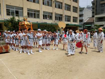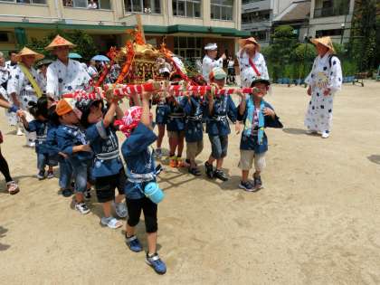 本日、天候が心配されましたが、お昼を過ぎたぐらいから晴天となり、勇壮に元気よく子どもみこしをかつがせていただくことができました。
