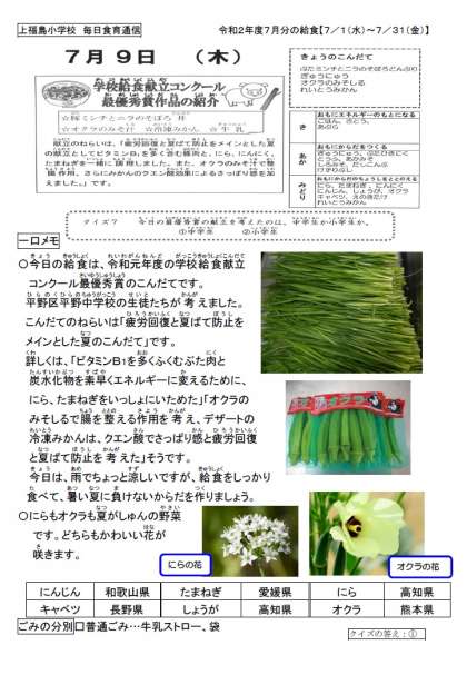 今日は令和元年度学校給食献立コンクール最優秀賞の献立です