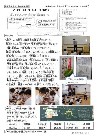 昨日、4,5年生が奈良漬の贈呈式を行いました