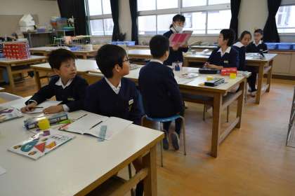 「広さ」の単元で、学級を2分割して学習しています。子どもたちの様子を細かく見たり、発表の機会を増やしたりするなどして、学力の向上を図っています。