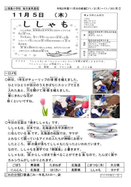 昨日、1年生がチューリップの球根を植えました。
