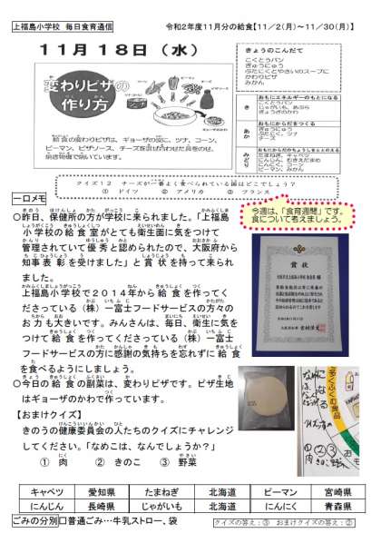 給食室の衛生管理が優秀で大阪府知事表彰を受けました