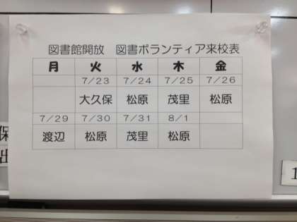 本日が、地域ボランティアの方による夏休みの図書館開放最終日でした。