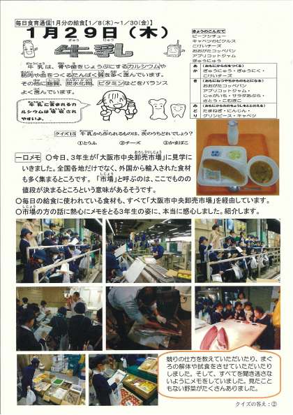 毎日食育通信:3年生が「大阪市中央卸売市場」に見学に行きました。(1月29日)