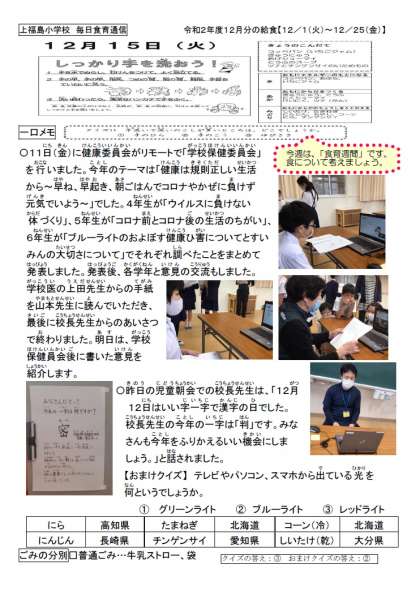 11日(金)に健康委員会がリモートで学校保健委員会を行いました