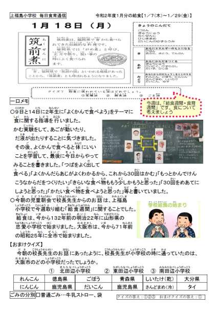 今週は「給食週間、食育週間」です。食について考えましょう。