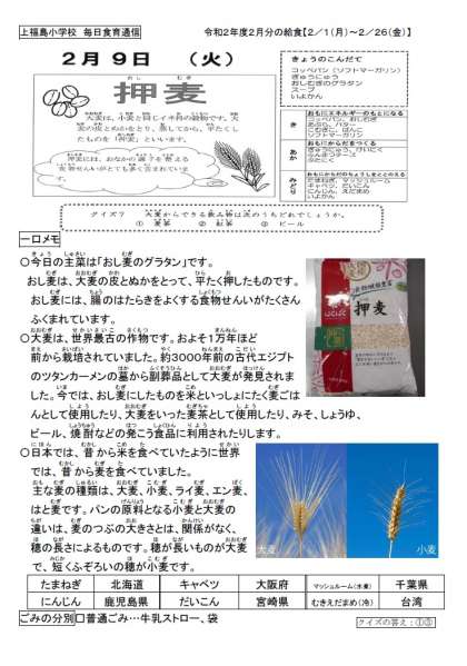 今日の給食は、食物繊維がたっぷりとれる「押麦のグラタン」です。