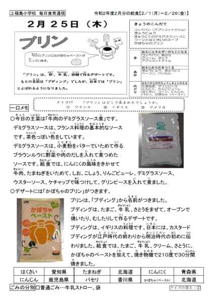 今日はデザートに「かぼちゃのプリン」が出ました。