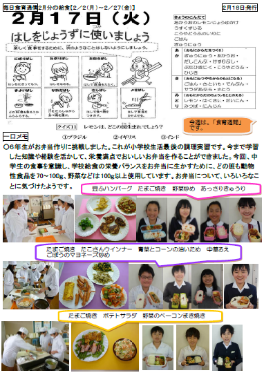 毎日食育通信:6年生のお弁当作りその1(2月17日)