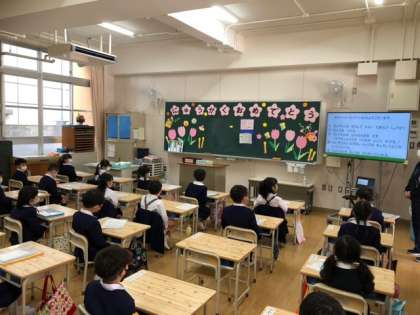 感染拡大防止のため、放送朝会となりました。校長先生、對馬先生からお話いただきました。初めての放送朝会だった1年生も椅子に座ってしっかり話を聞くことができていました。