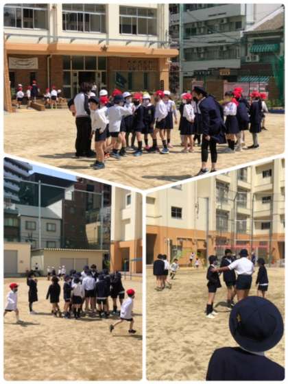 今日も運動場は大賑わいです。いろんな学年が楽しく遊んでいます。6年生は他学年と一緒に遊んだり、5年生や3年生は先生と一緒にクラスみんなで遊んだりしています。