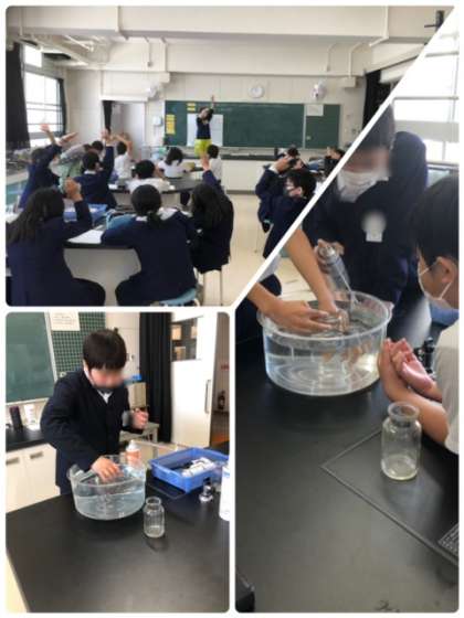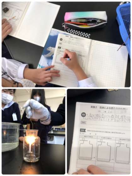6年生が理科の学習で気体によるものの燃え方の違いを学習しました。窒素や酸素、二酸化炭素の中にロウソクを入れて燃え方の違いを学習しました。