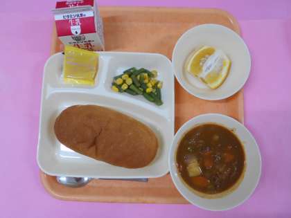 給食のビーフシチューは、手作りのブラウンルウを加えて煮こんでいます。