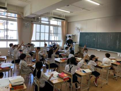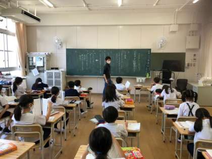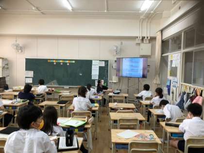 4年生が2つに分かれて授業を受けていました。真剣な眼差しで授業を受けていました。