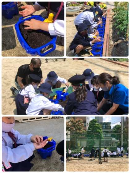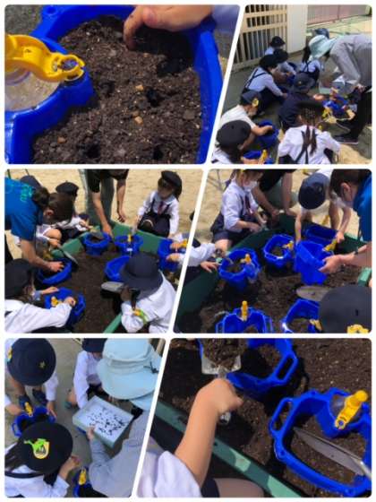 しっかりと説明を聞き、今日は最初から最後まで自分達で頑張りました。土を入れ、指で穴を開け、種を植えて、土をかぶし、水をあげる。どの活動も楽しそうに取り組んでいました。