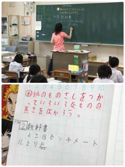1組さんも2組さん同様に、長さの学習です。ノートも丁寧に書いていますね。