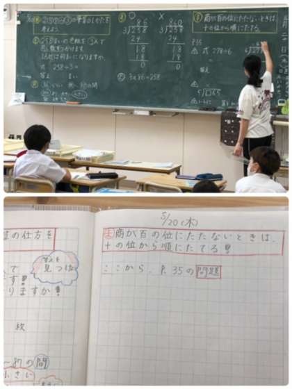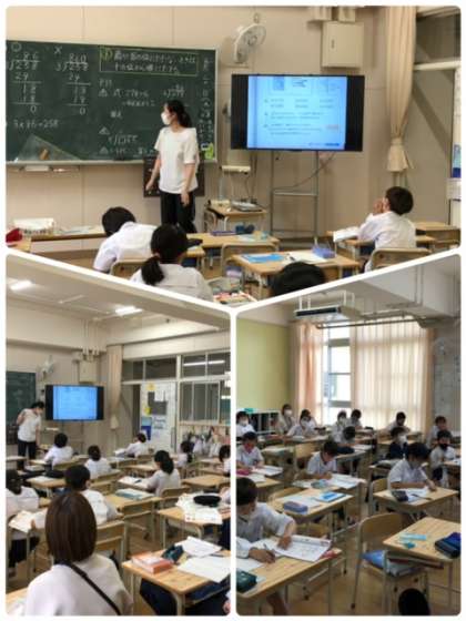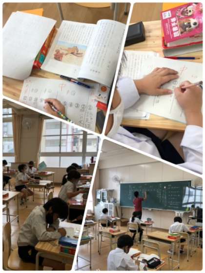 4年生はクラスを2分割し、国語と算数の学習をしていました。そろそろ学習も難しくなってくる頃です。みんな真剣に考えて、答えをノートやワークシートに書いていました。
