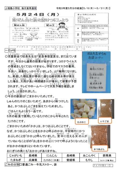児童朝会で校長先生は「梅雨の時期、線状降水帯に注意しましょう」と話されました。