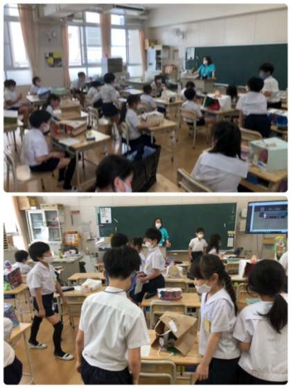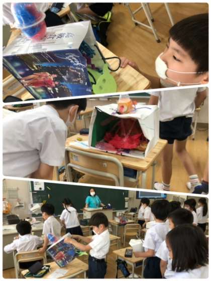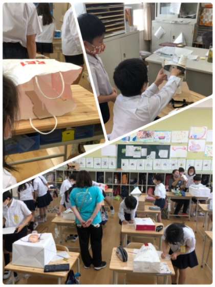 3年生が前回よりお伝えしていた、「袋の中には何が…」の最終回でした。出来上がった作品を互いに鑑賞しながら、良いところを褒め合いました。友だちの作品を見る目は、とても楽しそうでした。