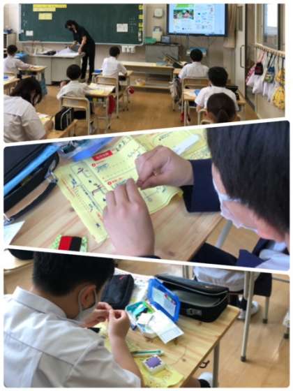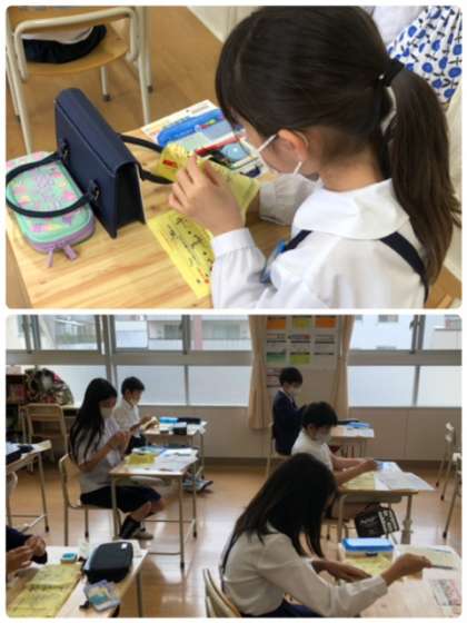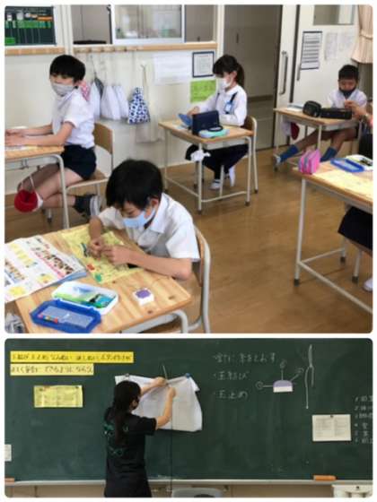 すくすくテストを終えた5年生が、4時間目に家庭科の学習で、玉止め、玉結びをしていました。苦戦する姿も見られましたが、コツも掴んだようで最後はスムーズにできていました。
