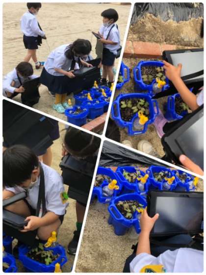 1年生が、タブレットを用いてアサガオの撮影に挑戦しました。初めて操作するタブレット。ログインするにも、撮影するにも一苦労でしたが、すぐに使いこなしてくれる事でしょう。