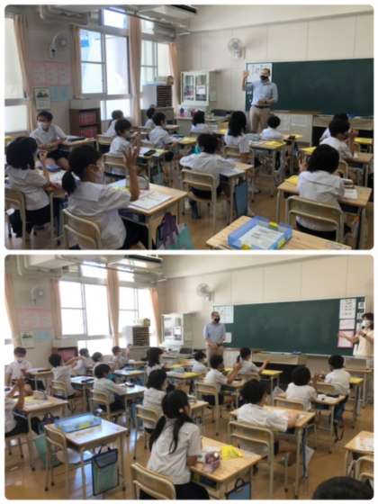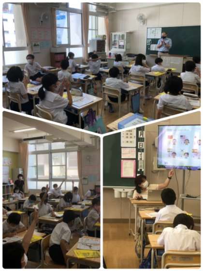 室先生とC-NETのLin先生と楽しく外国語活動をしました。いろいろな国の文化についての話を英語で聞き取っていました。