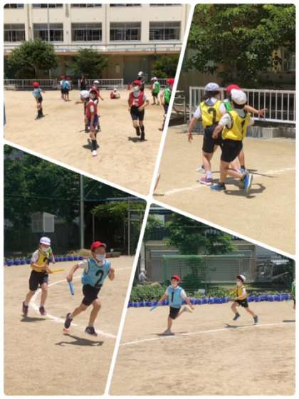 3年生も運動場で元気にリレーをしていました。バトンパスを頑張っていました。なかなか難しいようです。