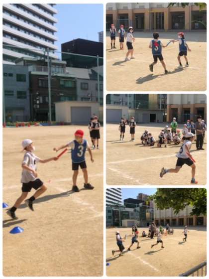 こちらもリレーです。6年生に負けじとバトンパスの練習に余念がありません。