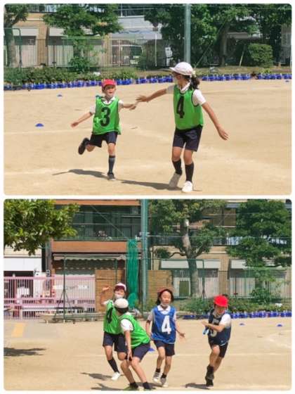 今日も運動場では、5年生がリレーをしていました。日に日に成長する5年生。バトンをもらう手の高さにご注目。