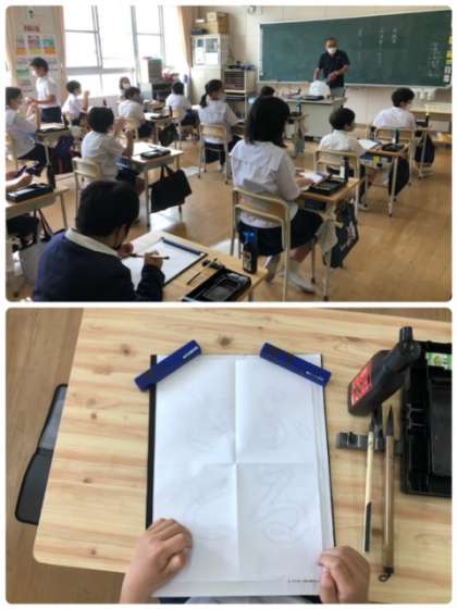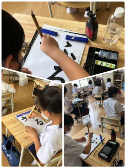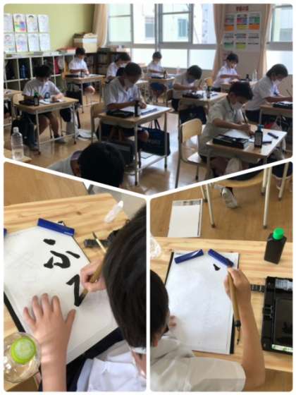 こちら5年生も、3時間目に習字の学習をしていました。姿勢よく、いい字を書いていました。