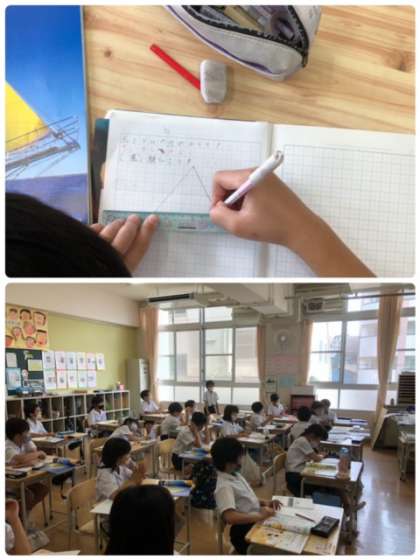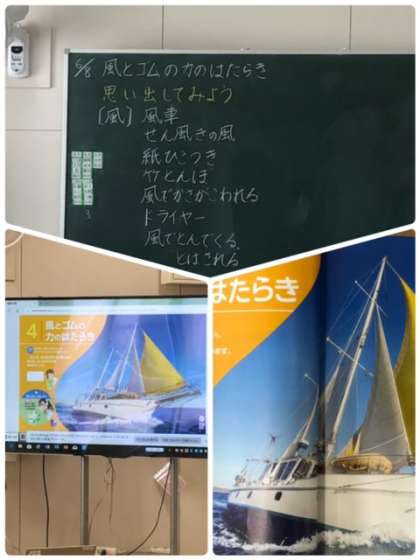 3年生が2時間目に風の学習をしていました。ヨットの絵を描き、どうすれば進むのか考えていました。楽しい学者になりそうです。