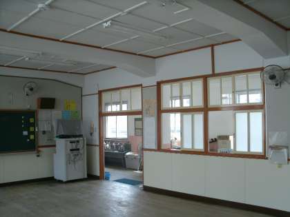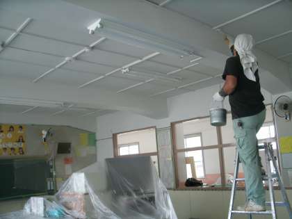 写真右 4年教室は現在塗装中、すっきりとした教室になることでしょう。
