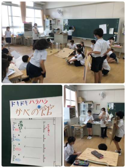 3年2組は、ふれあいまつりに向けての準備です。一度シュミレーションをしてクラスで意見を出し合います。きっと、おもしろい出し物ができるでしょうね。