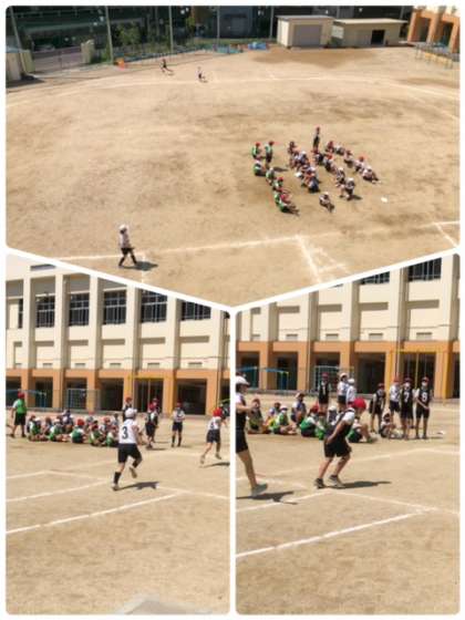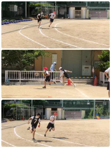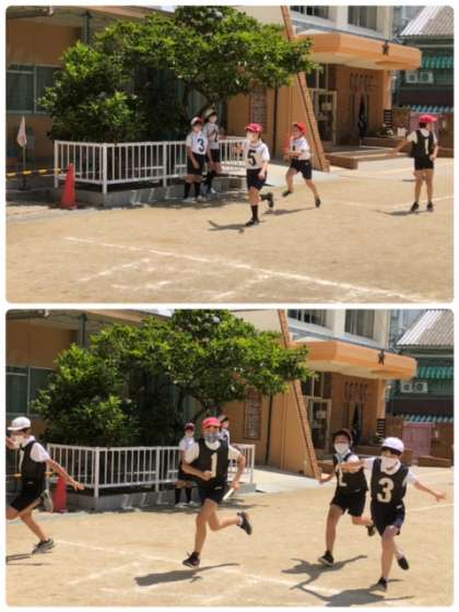 日に日に成長する、6年生のリレー。今日は、牛乳キャップを目印にして、走り出しのタイミングを意識していました。その後、バトンパスの練習。まだまだ上手くなりそうです。