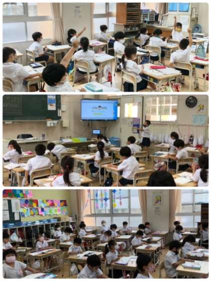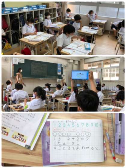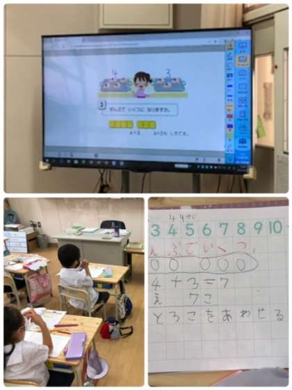 今日も算数は「あわせて」に注目した、たし算の学習でした。ノートもしっかり書ける様になりました。積極的に手も挙げています。