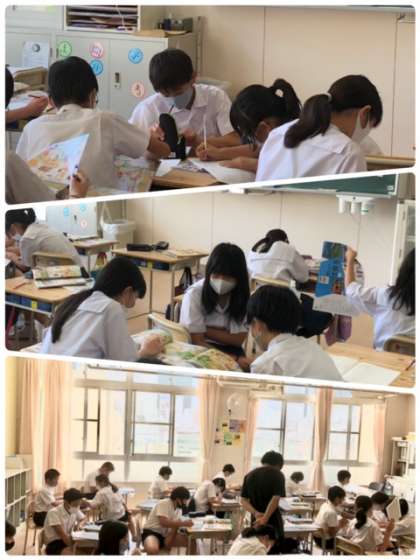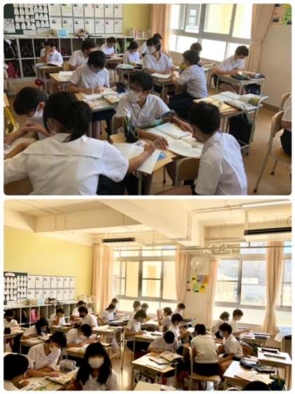 6年生の社会は、歴史の縄文時代。資料を調べながら、学習を深めています。それぞれの知識、情報を近くの友だちと共有しています。