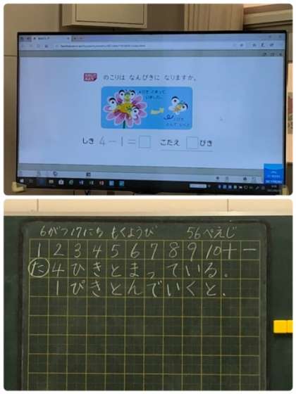昨日に引き続き、算数のひき算の学習です。ノートも上手に書けるようになりました。答えはわかったかな。