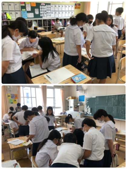 1時間目の国語で、6年生は投書の読み比べをしていました。それぞれの投書を選ぶ、理由と根拠を明確にするため、話し合っていました。なかなか難しい学習です。