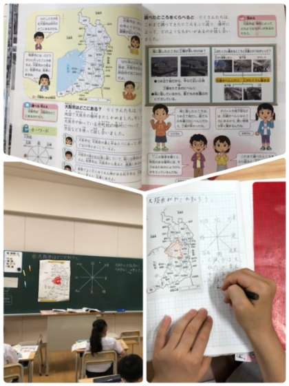 3年1組と同じように、大阪市と隣接する市について学習しました。大阪市の東隣は?みんな教科書を見て一生懸命考えていました。