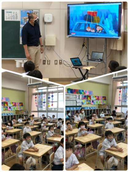 今日は、1年2組で英語の学習です。しっかりと英語を聞き取れているようで、聞こえてきた色を教室の中から探し出していました。
