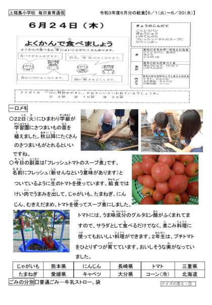 22日(火)なかよし学級が学習園に「さつまいもの苗」を植えました。