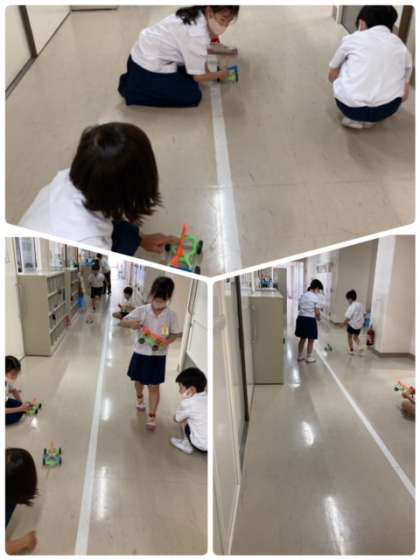 先日作った車を走らせた後、4月に植えたマリーゴールドなどの植物の成長を観察に行きました。