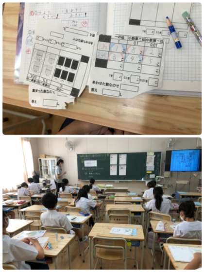 小数がたくさん出てくる位の学習です。0.1をもとにしたり、0.01をもとにしたりと大変です。でも、しっかり学習できていますね。