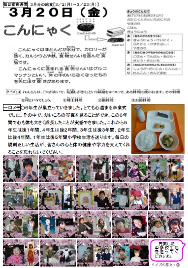 毎日食育通信:6年生が巣立っていきました。(3月20日)
