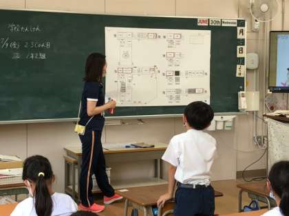 2年生が1年生を連れて学校探検をするために校舎の効率的な回り方を考えていました。1年生を連れて歩くのが待ち遠しいですね。
