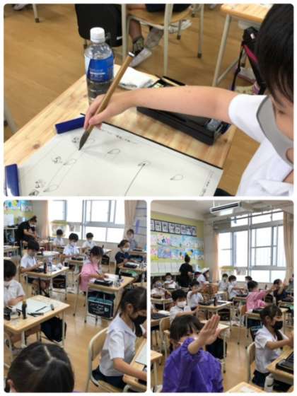 2時間目に、習字をしました。今日のめあては「ニ」です。筆先まで集中して、丁寧に書いていました。
