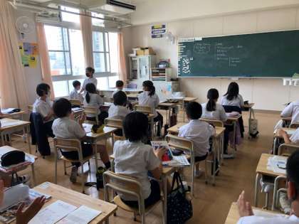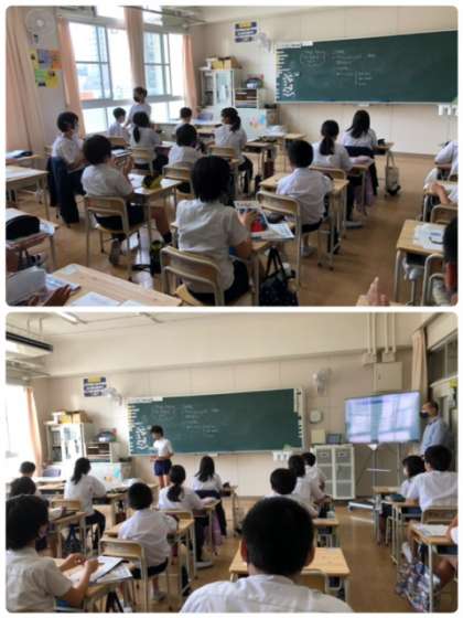 6年生がこの1学期までの間に習った英語を使って、自己紹介をしました。想像以上に、たくさんの英単語が出てきて驚かされました。聞いてる方も、理解できているようでした。