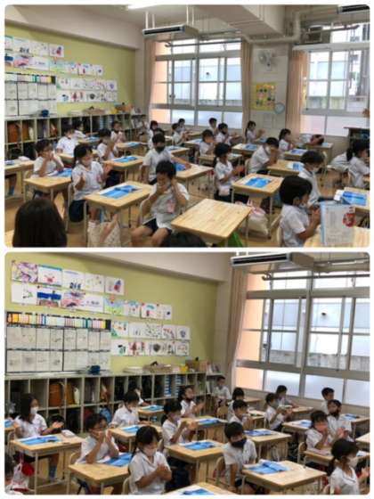 こちら1組も音楽。リズムに合わせて手拍子や足拍子をしています。みんな楽しそうです。