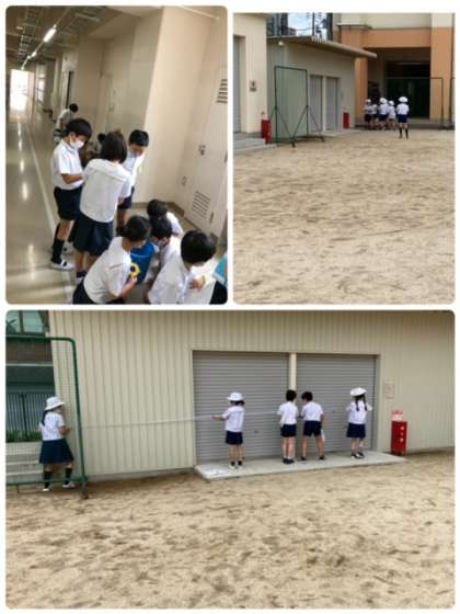 長さの学習は、教室を飛び出し廊下、運動場へと場所を移しています。楽しい学習のようです。