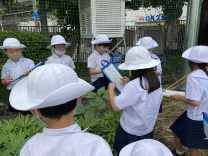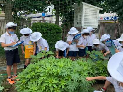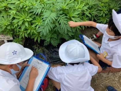 春に植えた植物の育ちを観察しに学習園へ!大きくなってるようですね。